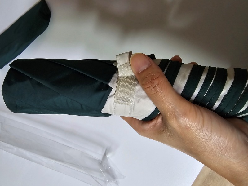 우산이 접힌 후 길이를 줄이기 위해서는 직접 당겨야 하는데 그것도 힘이 제법 들어갔습니다.
